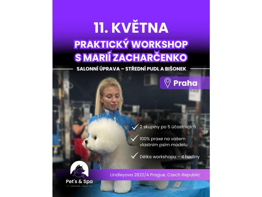 The workshop follows the Sunday seminar, where you will gain theoretical foundations of salon grooming for Bichon Frise and Poodle. During the workshop, you will have the opportunity to apply everything in practice.